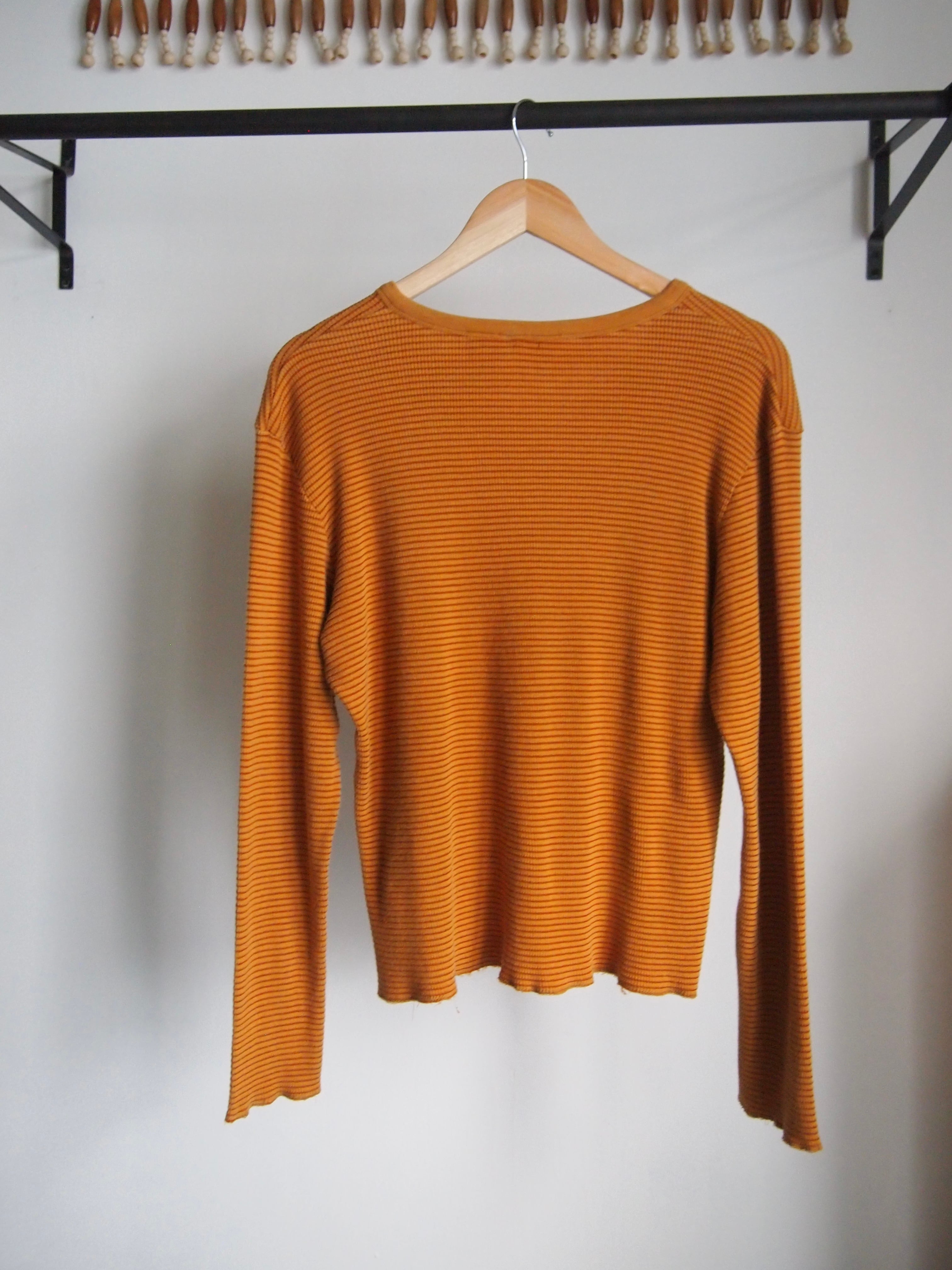 レディースLサイズ少しゆるっと来ていただいて、インナーとして重ね着してストライプを少し見せたりする着方もオススメです。