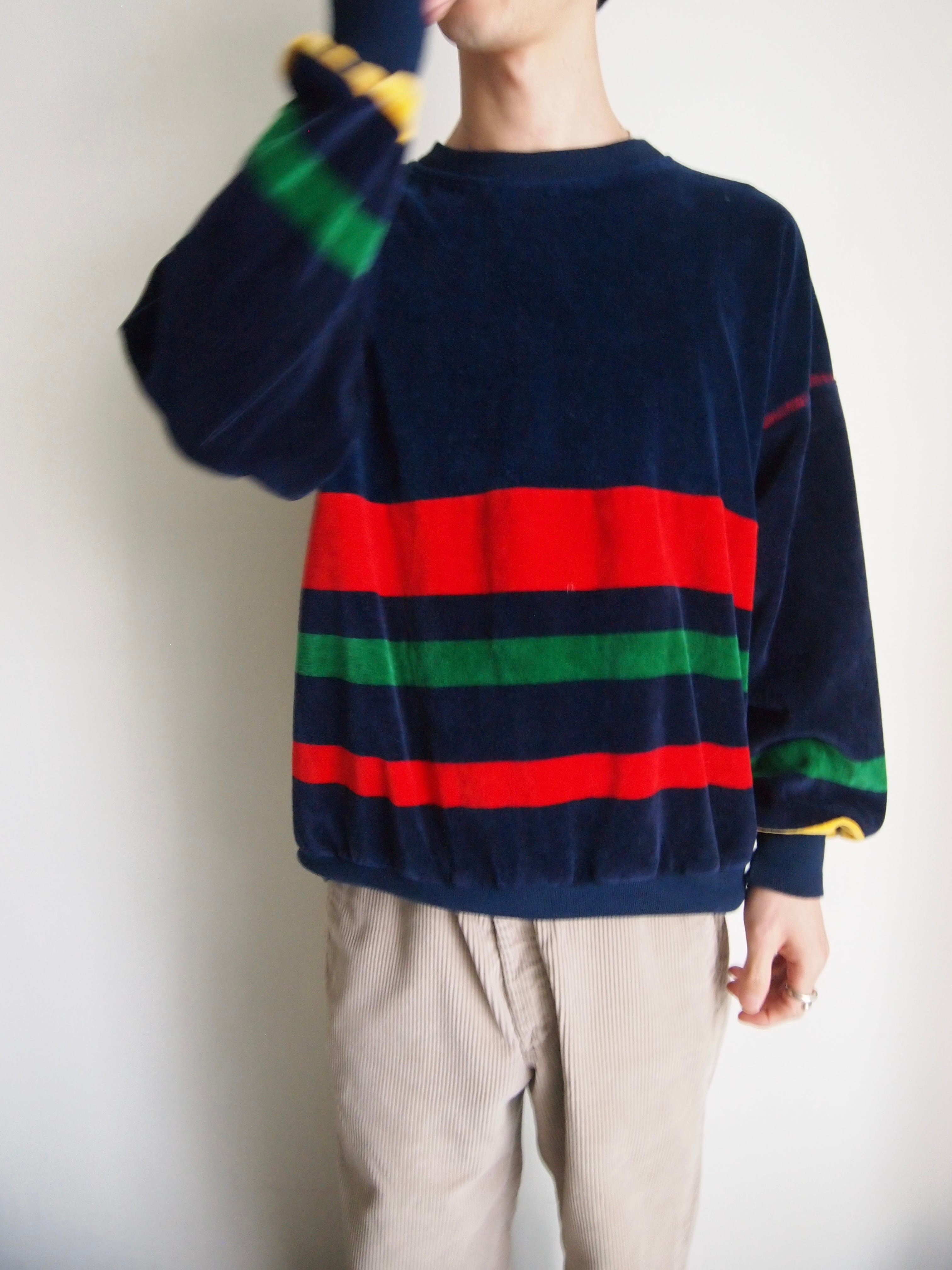 太めのボーダーデザインのベロアトップ。